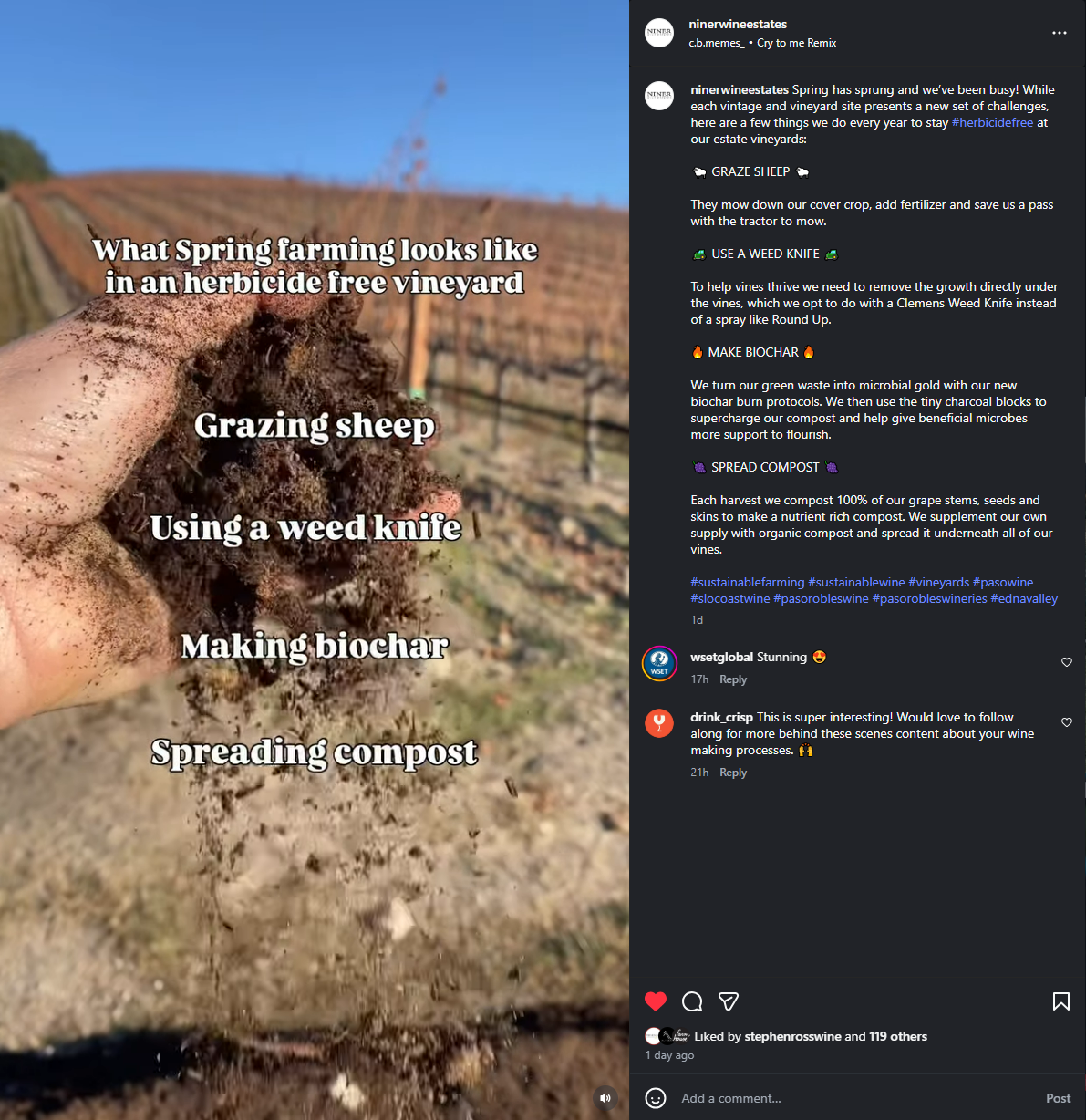 For example, check out this post from Niner Wine Estates highlighting what spring farming looks like in an herbicide-free vineyard.